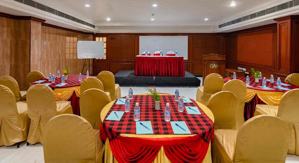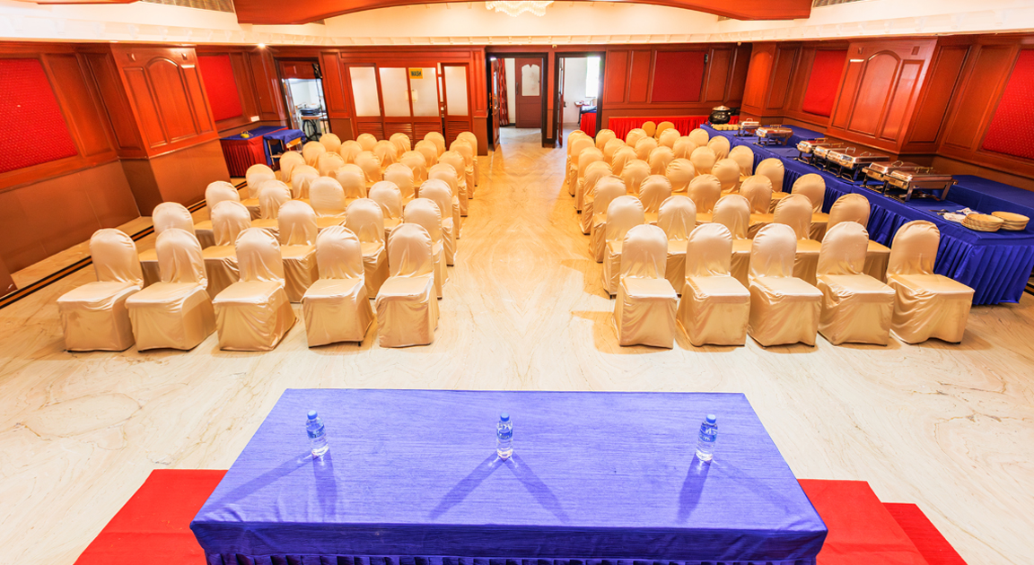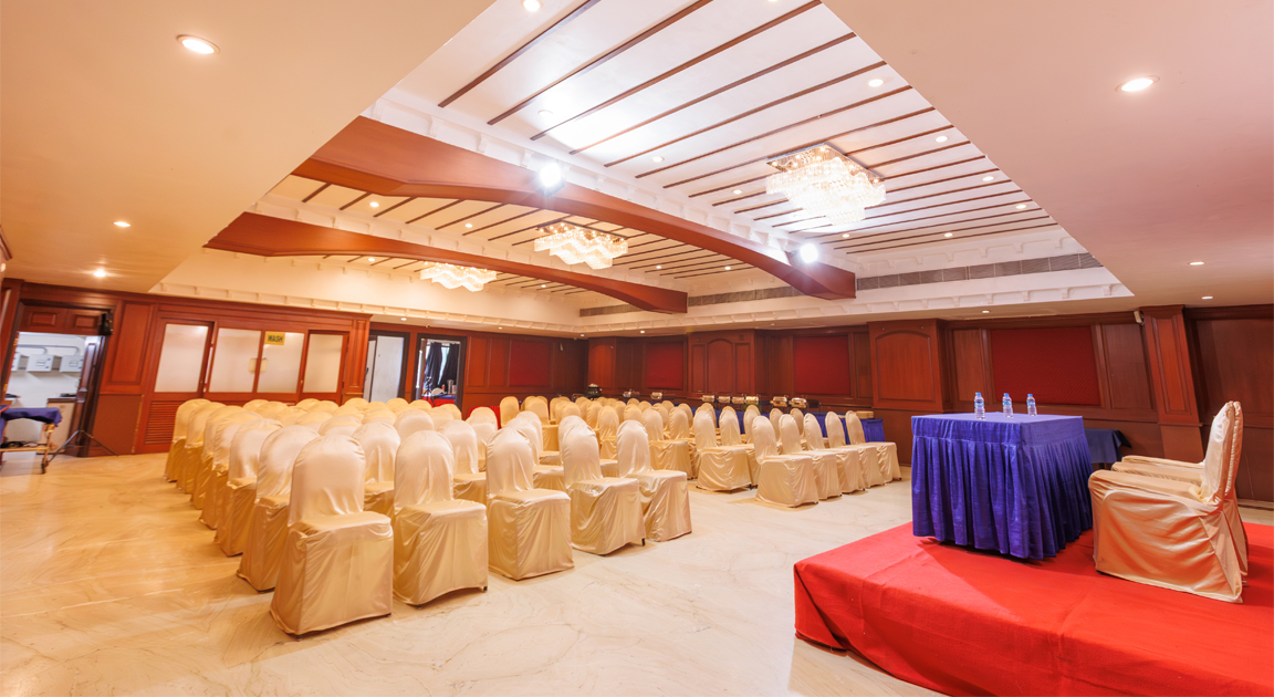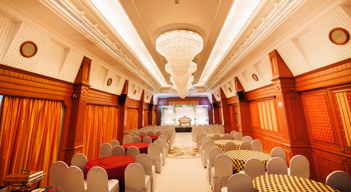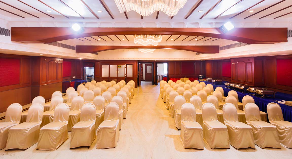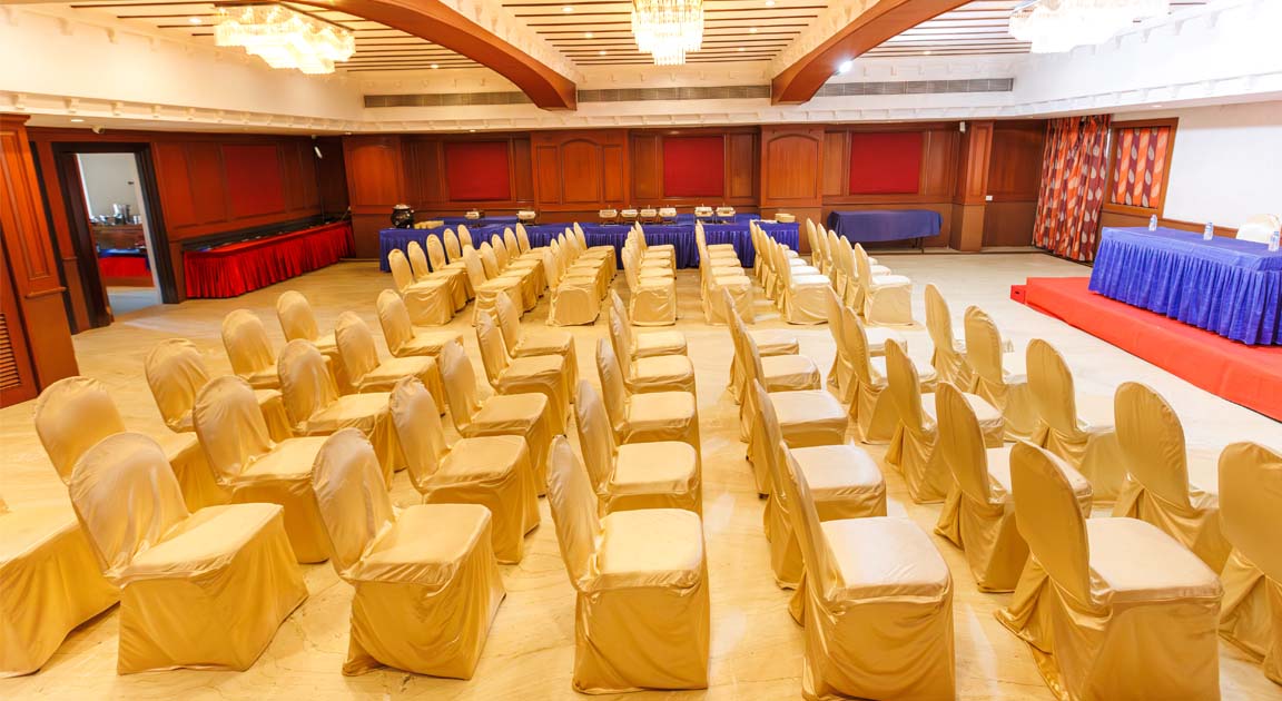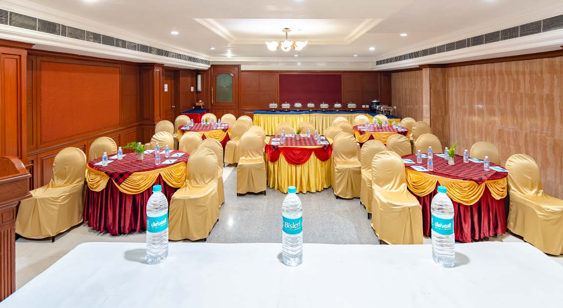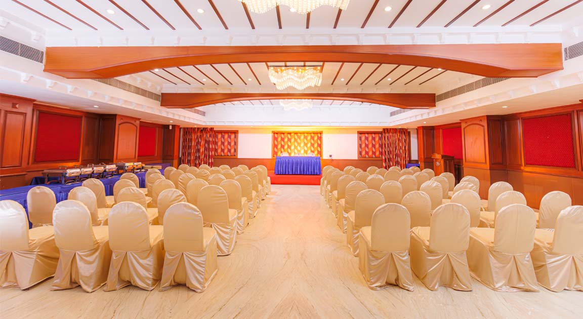 At Hotel Annamalai International, Pondicherry, Prince Court banquet hall showcases exquisite interiors, featuring tastefully coordinated décor, elegant curtains, comfortable seating, and a well-designed stage setup. Equipped with modern amenities and cutting-edge technology, it is an ideal venue for weddings, receptions, birthdays, conferences, and private parties. The hall can comfortably accommodate 50 to 250 guests, offering versatile seating arrangements such as floating crowd, theatre, U-shaped, cluster, classroom, boardroom, and more — ensuring a perfect setting for any occasion.