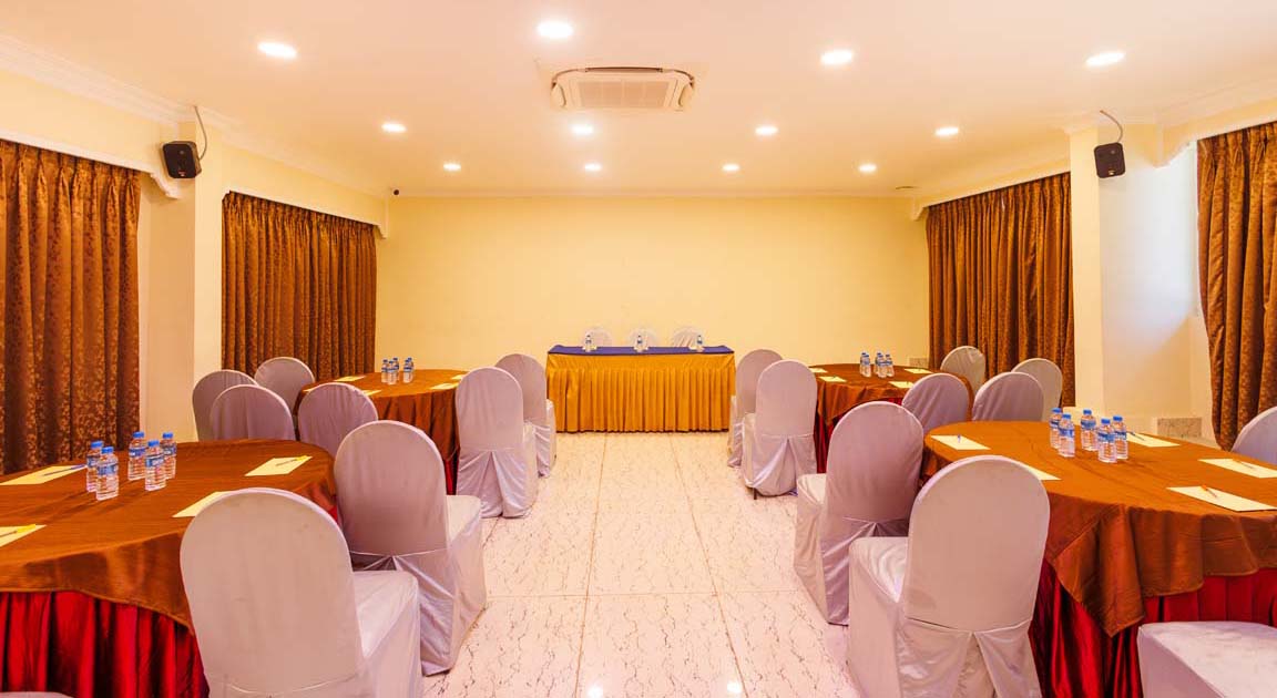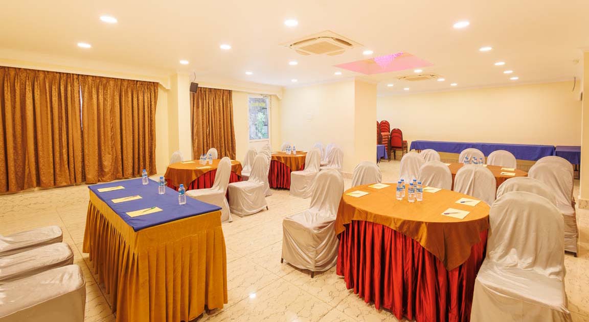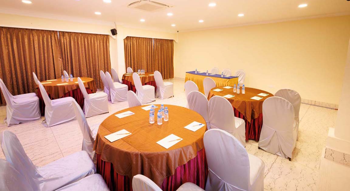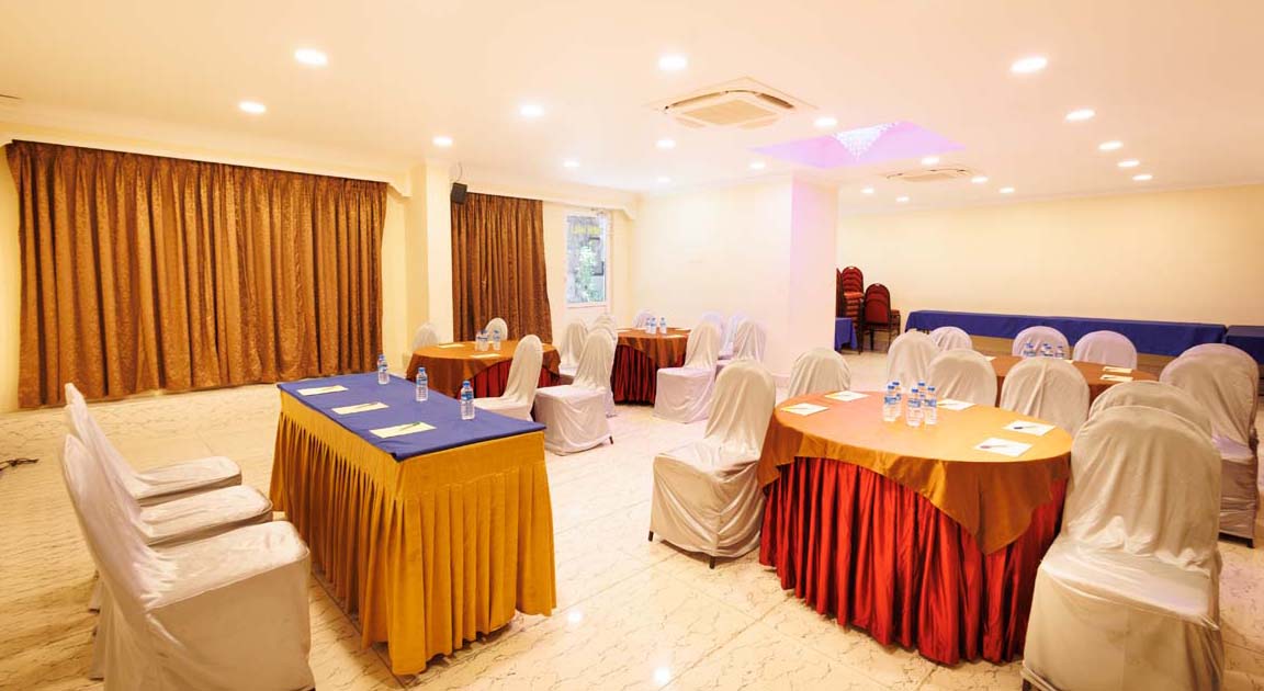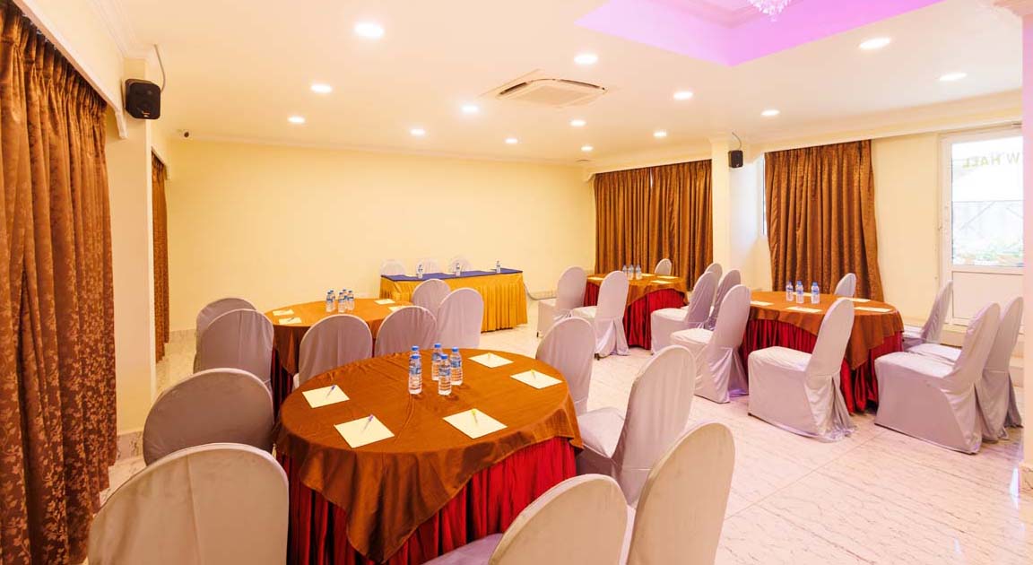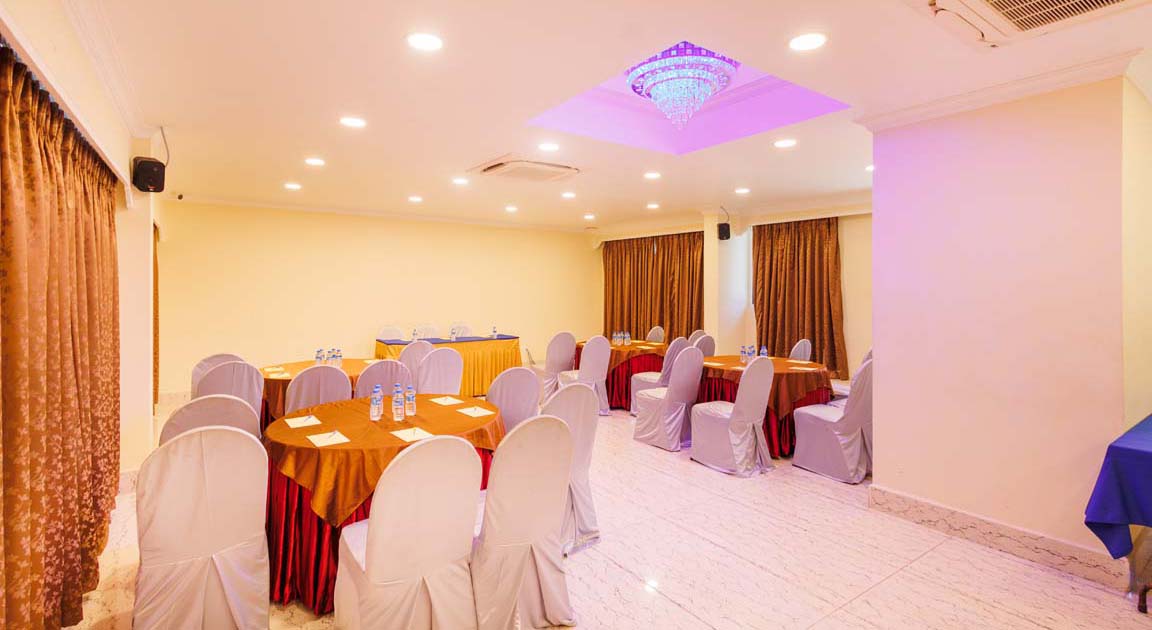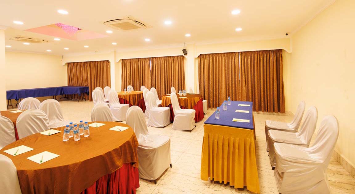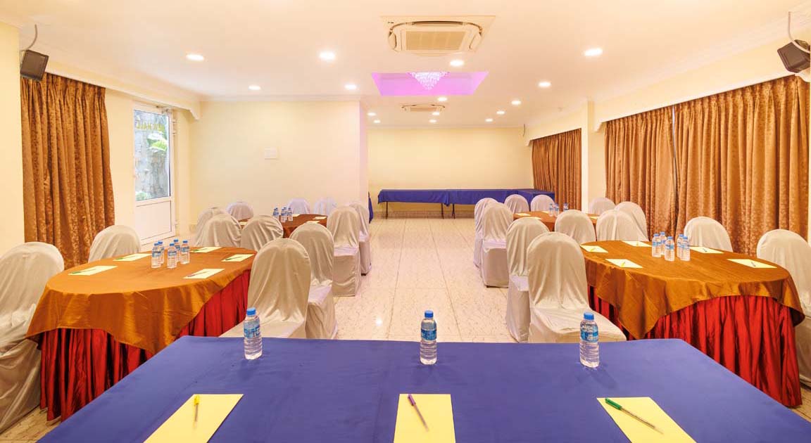 At Hotel Annamalai International, Pondicherry, Prince Court banquet hall showcases exquisite interiors, featuring tastefully coordinated décor, elegant curtains, comfortable seating, and a well-designed stage setup. Equipped with modern amenities and cutting-edge technology, it is an ideal venue for weddings, receptions, birthdays, conferences, and private parties. The hall can comfortably accommodate 50 to 250 guests, offering versatile seating arrangements such as floating crowd, theatre, U-shaped, cluster, classroom, boardroom, and more — ensuring a perfect setting for any occasion.